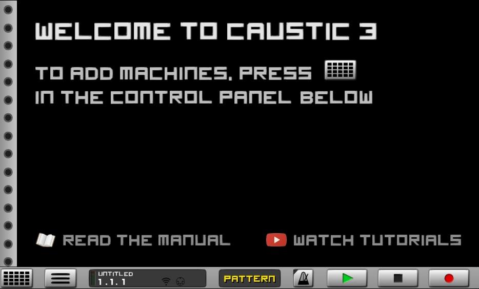 Когда вы запустите Caustic 3, вы, вероятно, увидите тот же экран, как показано выше. Чтобы начать работу с этим руководством по Vocoder, нажмите кнопку «Машины»: