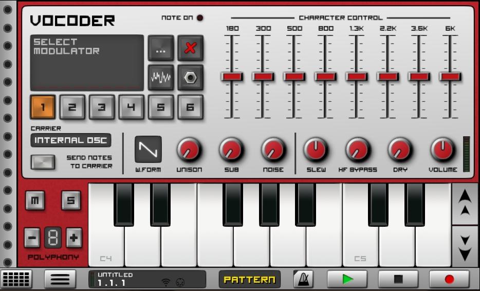 Теперь коснитесь инструмента Vocoder в списке машин, чтобы перейти к экрану управления синтезатора: