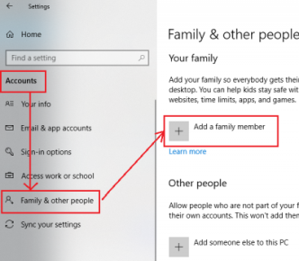 Выберите Добавить члена семьи в разделе «Ваша семья». Далее, добавьте детали и создайте свой аккаунт. Перезагрузите систему и войдите в систему, используя новую учетную запись.