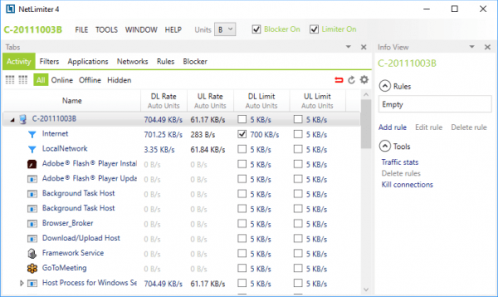 NetLimiter предоставляет вам полный сетевой контроль над вашим компьютером, не только для использования в Интернете, но и для локальной сети, с такими функциями, как: