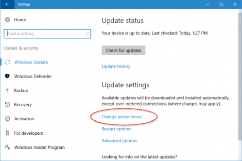 Откройте приложение «Настройки», перейдите в «Обновление и безопасность», затем «Изменить активные часы» в разделе «Настройки обновления», чтобы убедиться, что настройки временного диапазона соответствуют вашему графику работы.