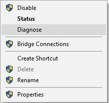 - Найдите сетевой адаптер, щелкните его правой кнопкой мыши и выберите «Диагностика».