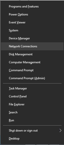 - Нажмите Windows Key + X и выберите Сетевые подключения.