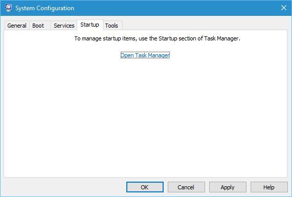 - Перейдите на вкладку «Автозагрузка» и нажмите «Открыть диспетчер задач».
