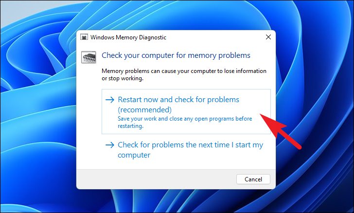 Ваш компьютер не будет перезагружаться и выполнять необходимые проверки вашей памяти, после завершения вы получите исчерпывающий отчет после перезагрузки, если обнаружится какая-либо проблема.