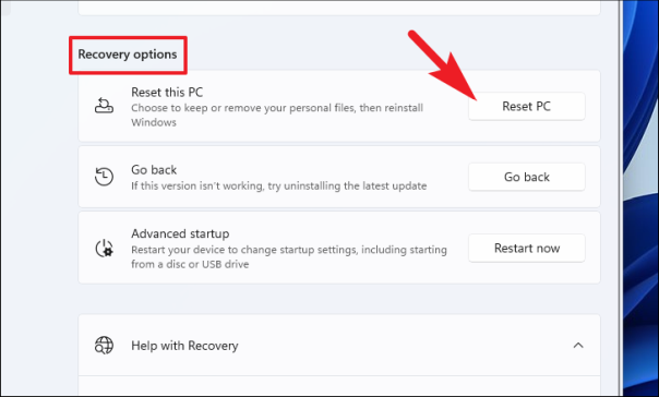 Нажмите «Сбросить ПК»; кнопку в разделе «Параметры восстановления». На вашем экране откроется отдельное окно «Сбросить этот компьютер».