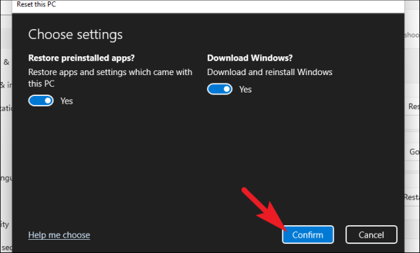 - Загрузить Windows?: Эта опция позволяет переключиться с «Облачной загрузки» на «Локальный сброс». На случай, если вы почувствуете необходимость изменить метод переустановки до ее начала.