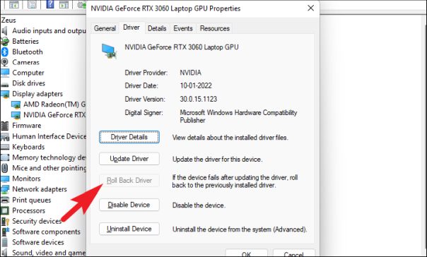 Если вы здесь, чтобы откатить драйвер, найдите категорию компонентов, для которой вы недавно обновили драйвер, и дважды щелкните ее, чтобы развернуть раздел. Затем дважды щелкните компонент, чтобы открыть его свойства. Это откроет отдельное окно на вашем экране.