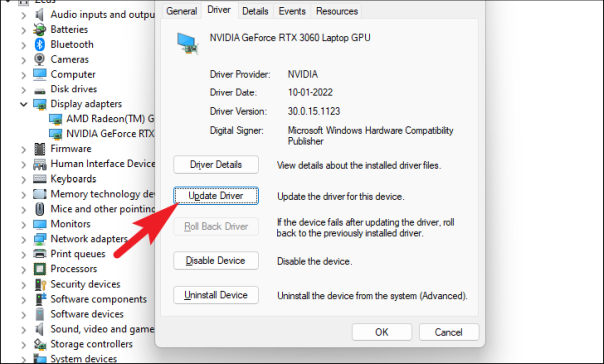 Если вы хотите обновить драйвер, в окне свойств компонента нажмите кнопку «Обновить драйвер». Это откроет отдельное окно на вашем экране.