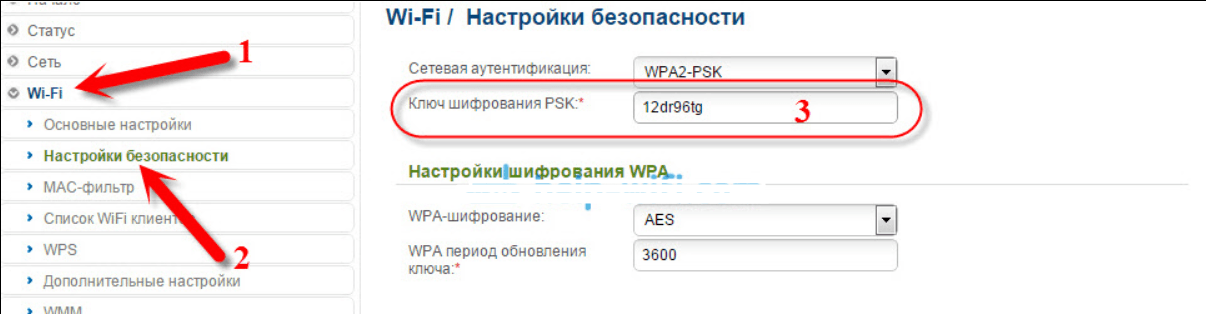 - Откройте раздел Wi-Fi, а в нём подраздел «Настройки безопасности». Вы увидите строку «Ключ шифрования PSK», в которой будет указано искомое значение.