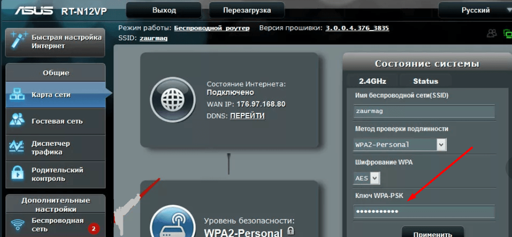 - На главной вкладке «Карта сети» будет указан пароль. Если навести на него курсор, то значение перестанет быть скрыто.