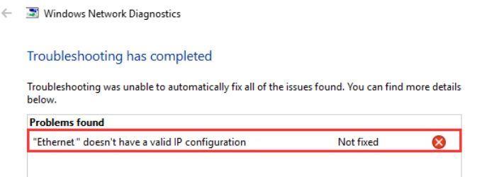 Ошибка «Ethernet не имеет действительной IP-конфигурации»