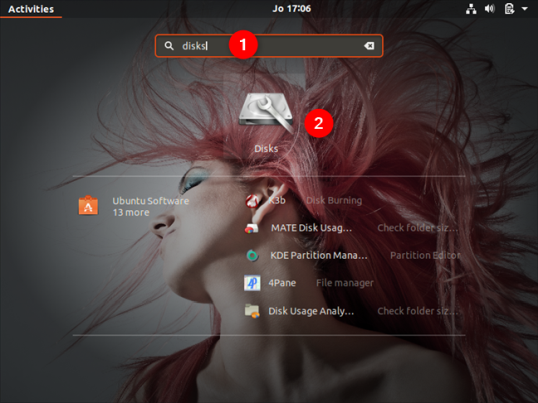 Прежде всего удалите системный раздел(ы) Windows 10. Для этого вам нужно приложение, которое может управлять дисками и разделами. Тот, который по умолчанию найден в Ubuntu, называется Дисками. Начните с открытия меню «Приложения» нажатием на кнопку в левом нижнем углу экрана.