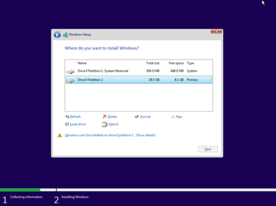 Затем на экране восстановления или во время установки новой операционной системы выберите существующие разделы Windows и отформатируйте или удалите их.