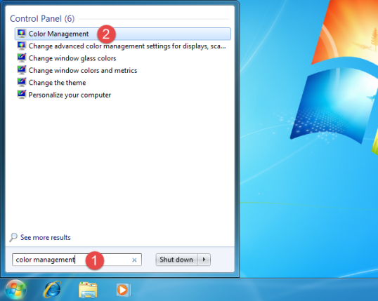 Если вы используете Windows 7, откройте меню «Пуск» или панель управления и выполните поиск «управление цветом». Затем нажмите на ярлык Управление цветом.