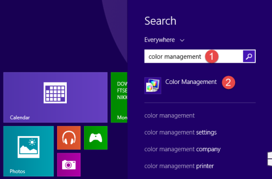 Если вы используете Windows 8.1, переключитесь на экран «Пуск» и начните писать «управление цветом». Затем нажмите или коснитесь результата Управление цветом.