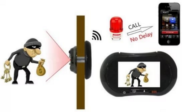 - к видеоглазку можно подключить тревожную сигнализацию и различные беспроводные датчики.
