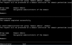 Пользователь «test» будет частью группы «Администратор домена». Это можно проверить, извлекая список администраторов домена.