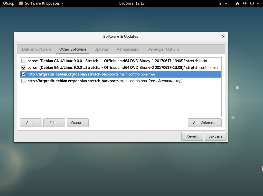 За последние несколько лет было добавлено еще несколько официальных и неофициальных репозиториев: Backports, Experimental, Security, Old Stable, и Update. Тем не менее использовать в большинстве случаев лучше только три основных.