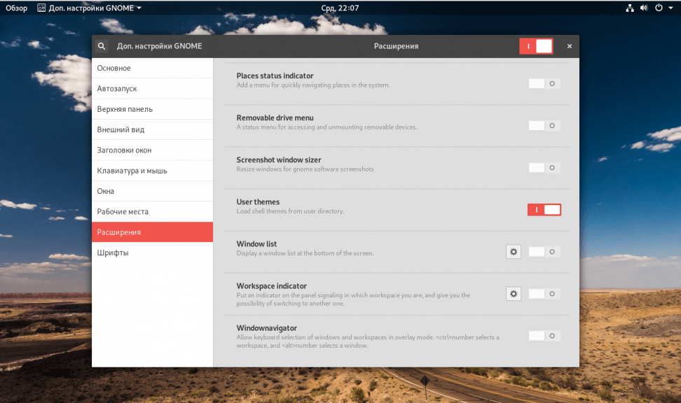 - Окружение рабочего стола (в него входят: Gnome, XFCE, Cinnamon, KDE, MATE, LXDE)