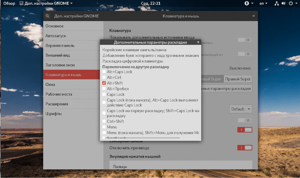 Теперь выберите клавиатурную раскладку. А на следующей страницу метод переключения раскладки.
