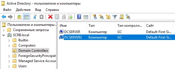 DCSERVER2 был в нашей сети резервным и после проблемы, связанной с неисправностью жесткого диска, перестал запускаться. Восстановление из резервной копии не получилось. Пришлось его деинсталировать.