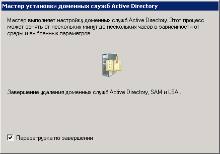 В следующем окне можно отметить галочкой – Перезагрузка по завершении. Мастер выполнит работу и сервер перезагрузится.