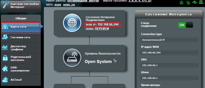 В дальнейшем подключиться к этому серверу можно, находясь в одной сети с роутером. В качестве имени пользователя и пароля нужно будет вводить данные, которые мы указали в последнем шаге инструкции. А IP-адрес сервера — это адрес самого роутера. Обнаружить его можно в веб-конфигураторе. У большинства производителей эти данные указаны на основной странице конфигуратора. У Asus, например, IP-адрес роутера можно найти на главной странице, вкладка «Карта сети».