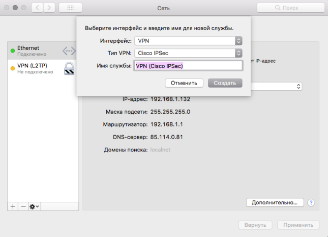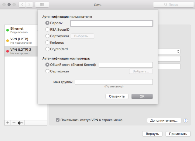 «Родные» средства Mac предлагают пользователю только подключиться к VPN-серверу, но не создавать его. Для подключения следуйте простой инструкции: