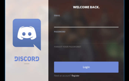 Прежде чем участвовать в службе, Discord потребует, чтобы вы предварительно зарегистрировали учетную запись. Вы найдете ссылку «Регистрация» в нижней части окна запроса на вход.