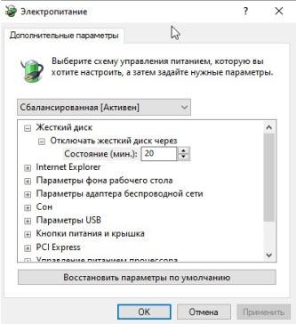 А если нажать ссылку «Изменить дополнительные параметры питания«, то можно довольно тонко настроить схему эл. питания: