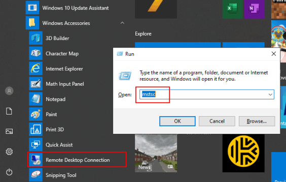 • Для начала откройте инструмент «Подключение к удаленному рабочему столу». Вы можете найти это в меню «Пуск» Windows в папке «Стандартные аксессуары» Windows или щелкнув Win + R, чтобы открыть диалоговое окно «Запуск Windows», затем набрав mstsc и нажав « ОК», чтобы открыть его.