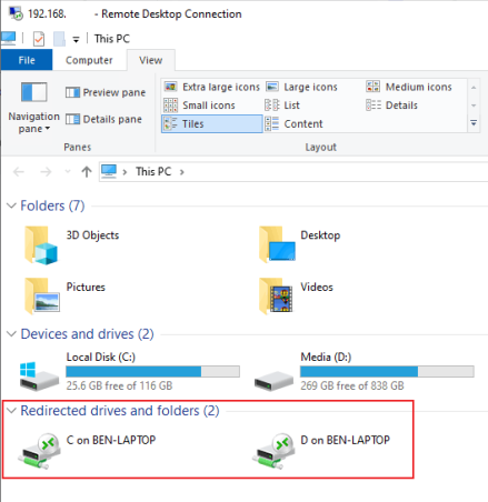 Доступ к локальным файлам и папкам в сеансе удаленного рабочего стола