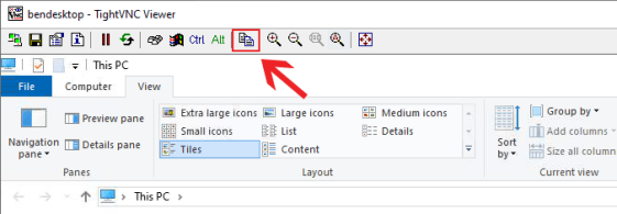 • После подключения щелкните значок «Передача файлов» в строке меню TightVNC.