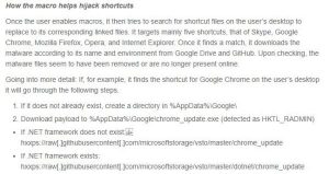 В исследовании, которое было выполнено Trend Micro, стало ясно, что макрос, который скрыт в документе, будет искать ярлыки на рабочем столе, и он заменит ярлык вредоносными адресами.