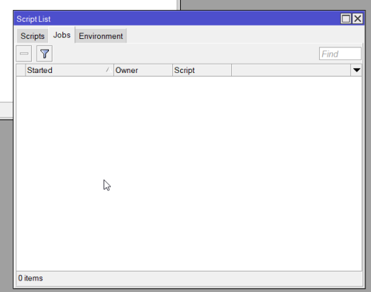 Здесь видно два фоновых задания. В моём случае первое фоновое задание — это терминал (type=login), а второе — это сама команда «/system/script/job/print terse» (type=comand). Также, здесь видно кто запустил фоновое задание (owner=admin), права с которыми работает фоновое задание (policy=…) и время запуска (started=…).