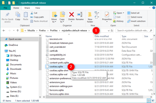 Mozilla Firefox хранит все файлы cookie со всех посещаемых вами веб-сайтов в одном файле cookies.sqlite. Вы можете найти его в папке своего профиля Firefox по следующему пути: «C:UsersВаше имя пользователяAppDataRoamingMozillaFirefoxProfiles». Там вы должны найти папку вашего профиля, которая состоит из нескольких случайных символов плюс текст по умолчанию. Например, моя папка профиля Firefox называется mjzda4kw.default-release.