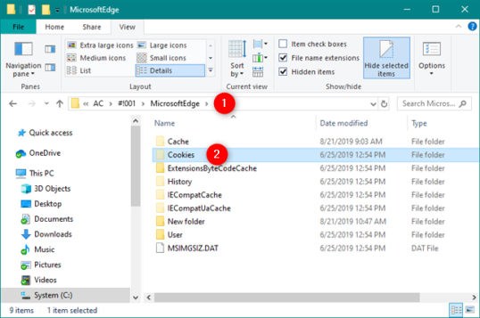 Где файлы cookie Microsoft Edge находятся в Windows 10?
