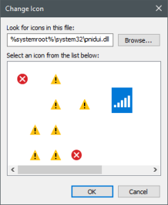 Pnidui.dll имеет значки для настроек, связанных с сетью (состояние Ethernet или беспроводной сети, расположение в сети и т.д.). Большинство значков здесь прозрачного белого цвета, поэтому вы должны выбрать их, чтобы увидеть, как они выглядят.