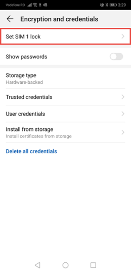 В Android 8 вы открыли настройки блокировки SIM-карты. В Android 9 нужно выполнить еще два шага. Сначала нажмите «Шифрование и учетные данные».