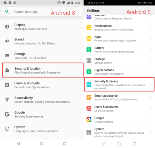 Это руководство охватывает Android 8 Oreo и Android 9 Pie. Снимки экрана для Android 8 всегда слева, а для Android 9 — справа.