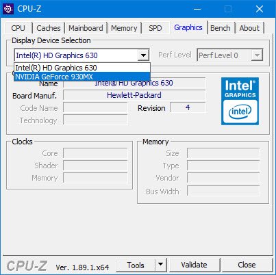Если вы ищете бесплатное программное обеспечение, чтобы сделать работу за вас, вы можете скачать CPU-Z. Этот инструмент собирает информацию об основных устройствах вашей системы. Он даст вам не только информацию о вашей видеокарте, но и другую важную системную информацию. Перейдите на вкладку Графика. Если вы видите одну запись, это означает, что у вас установлена только встроенная видеокарта. На изображении выше вы увидите, что также установлена выделенная карта NVIDIA.