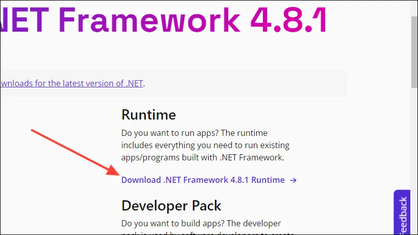 - Нажмите кнопку «Загрузить среду выполнения.NET Framework» справа, чтобы загрузить установщик платформы.