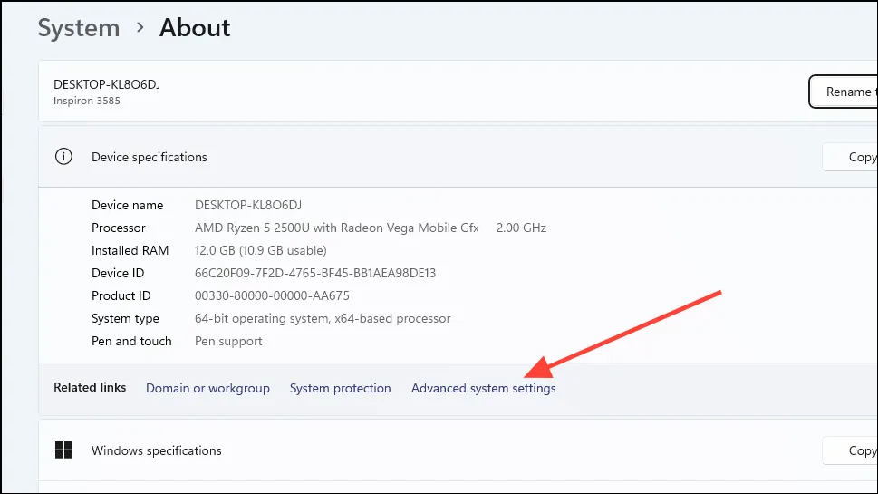 - На странице «Система» нажмите «Дополнительные параметры системы».
