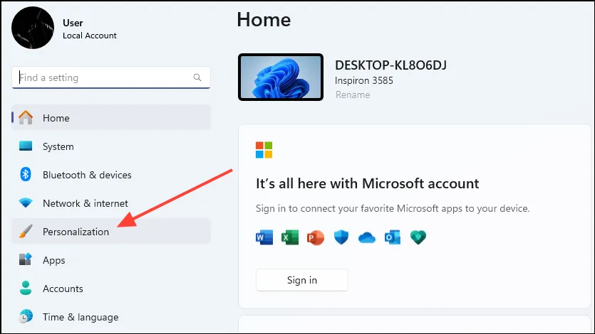 - Откройте страницу настроек и нажмите кнопку «Персонализация» слева.