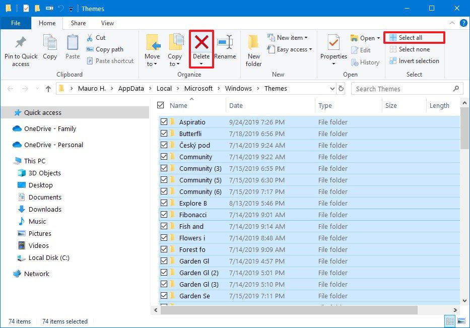 Как быстро удалить все темы Windows 10?