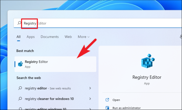 Чтобы открыть редактор реестра, откройте меню «Пуск» и введите «Реестр». Затем в результатах поиска щелкните плитку «Редактор реестра», чтобы открыть ее.