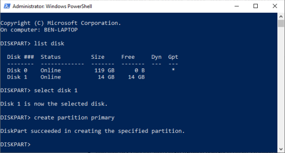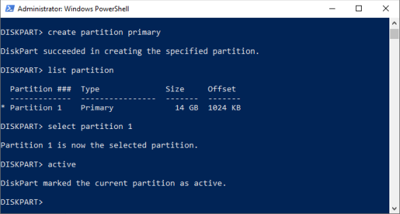 • Если вы хотите создать раздел, занимающий только часть свободного пространства (позволяя создать более одного раздела), введите вместо этого команду создать основной размер раздела = X , заменив X на размер раздела, измеренный в мегабайтах (например, размер = 1024 для 1 ГБ пространства).