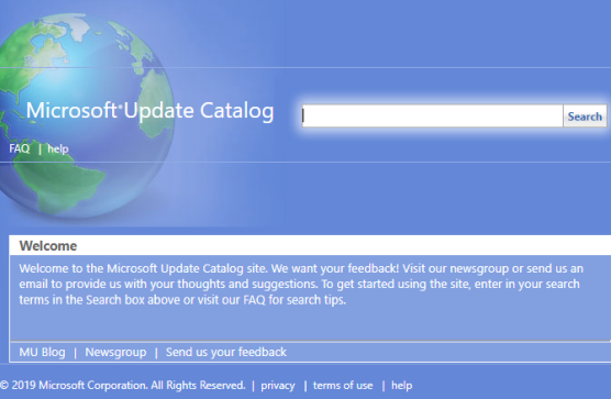 Когда вы откроете каталог обновлений Microsoft, его устаревший дизайн, вероятно, вернет вам воспоминания об использовании Windows XP. Простой синий фон и значок глобуса определенно соответствуют эпохе, поскольку она не обновлялась как минимум десять лет.