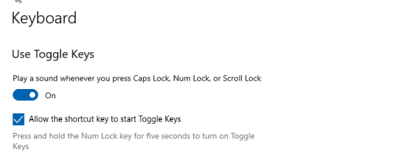 • Включите эту опцию. Воспроизведите звук всякий раз, когда вы нажимаете Caps Lock, Num Lock или Scroll Lock.